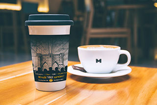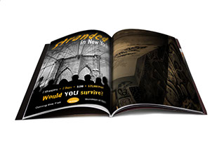 In this project, I needed to develop two different ads for a new television reality show: a coffee cup and a magazine ad. The show was called “Stranded in New York” and was a competition between seven strangers sharing $100 over seven days.  I was asked to balance the client’s brand (RTN) with the product’s brand (“Stranded in New York”). [Client Logo and TV Show name provided]