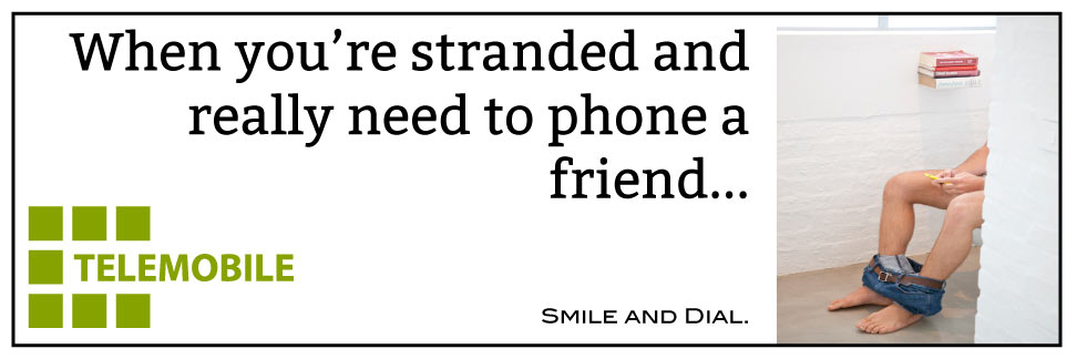 I was tasked with creating two designs for a subway advertisement for a cell phone service provider, one utilizing a humorous and the other a dramatic tone [Company name, logo, and tag line “Smile and Dial” provided]. I created one dramatic and two versions using humor, one a bit more mild than the other, in case the client wasn’t a fan of the “bathroom humor.”