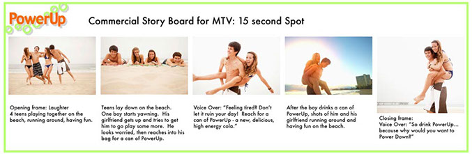 I was tasked with creating an original advertising campaign for an energy drink called Power Up. The goal was to consistently communicate a brand across a variety of media. I created a magazine ad, a subway ad, and a 15 second TV spot. [Client Logo provided]